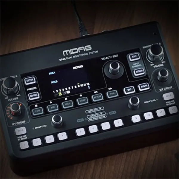 - در نهایت محصولات مایداس با پشتیبانی از محیطهای متنوع چه در اجرای زنده، چه در پخش و چه در ضبط، امکاناتی همچون مانیتورینگ شخصی (DP48) و اسپلیترهای فعال (DL231) را ارائه میدهند تا کنترل صدا دقیقتر و حرفهایتر انجام گیرد.