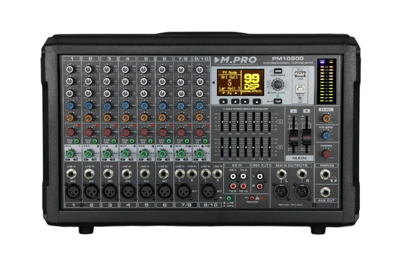 اکو آمپلی فایر MPRO PM 10800 یک پاور میکسر آنالوگ قدرتمند با تمرکز روی کاربردهای اجرایی و سیستمهای صوتی پرتوان است. توان خروجی 800 وات برای هر کانال روی بار 4 اهم عدد بالایی محسوب میشود و یعنی دستگاه برای فضاهای نسبتاً بزرگ، مراسمها یا اجراهای زنده طراحی شده است.